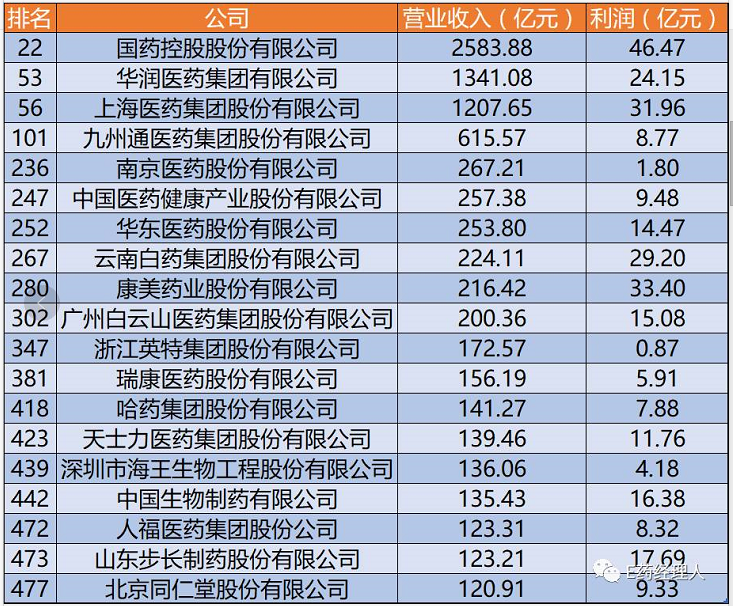 財富中國500強,19家藥企營收總額超8000億
