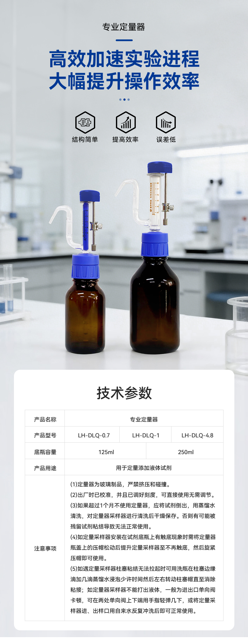 簡要描述: 結(jié)構(gòu)簡單,容量選擇豐富,可用來定量添加多種溶液。